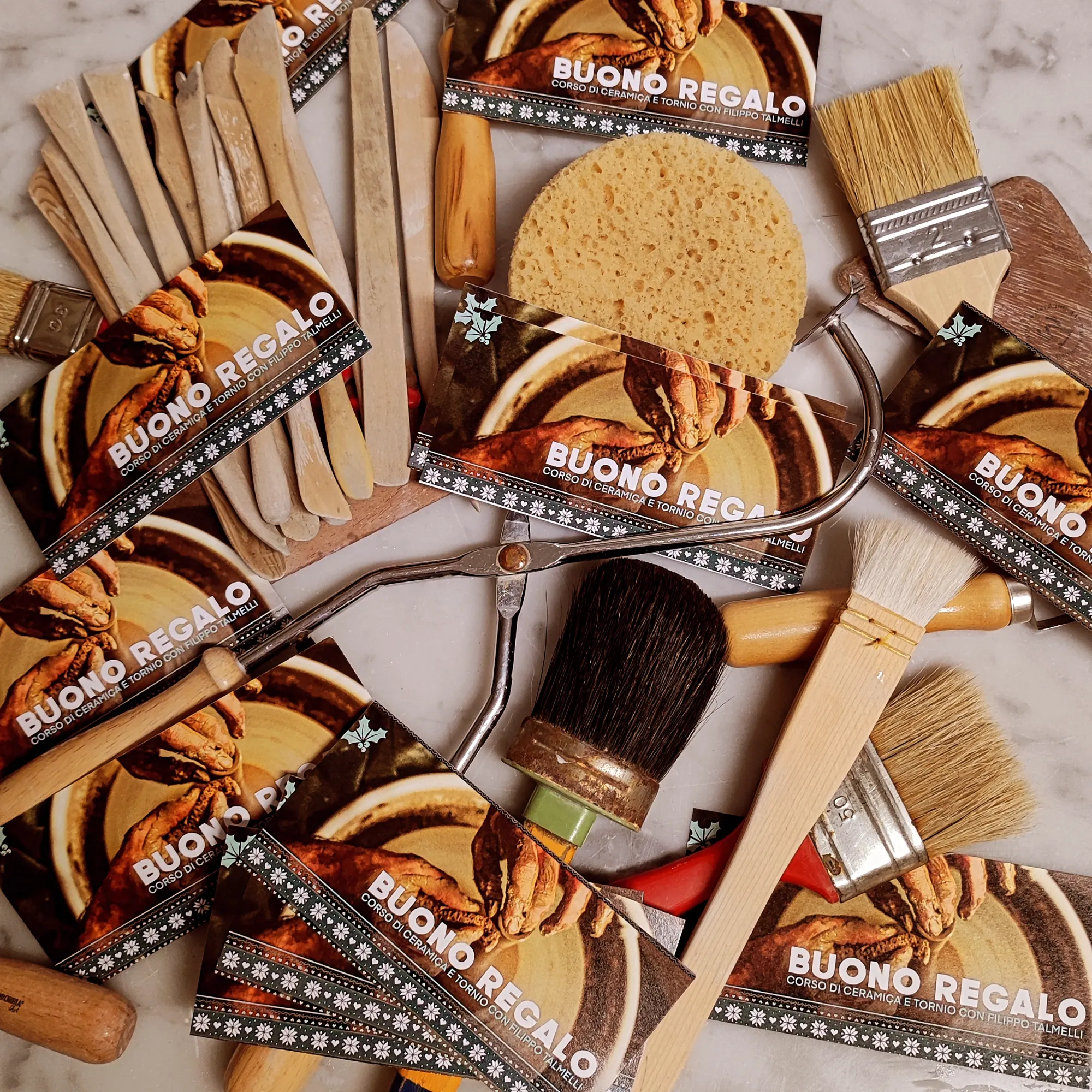 Tutto il materiale necessario è incluso nel costo delle lezioni: argille, smalti, ingobbi, torni, utensili e strumenti del mestiere.